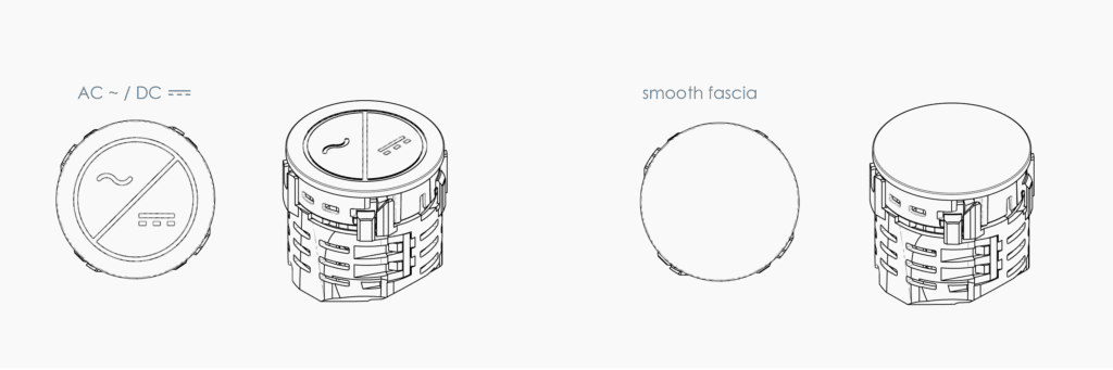 The Canister PSU blends high-power USB charging into your favorite OE products seamlessly. Dress up your chosen OE power module with an embossed “AC/DC” fascia or keep things clean with a smooth fascia. The Canister PSU pairs perfectly with the AC sockets in black or gray.