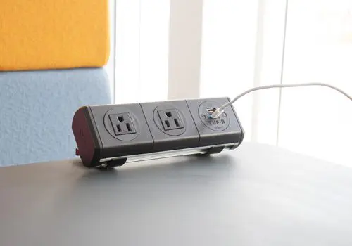 Furniture comes alive as soon as a QIKPAC CARRY clicks into a QIKDOC. Actuators, monitors, chargers, desktop USB or wireless charging are all powered up and ready for use.