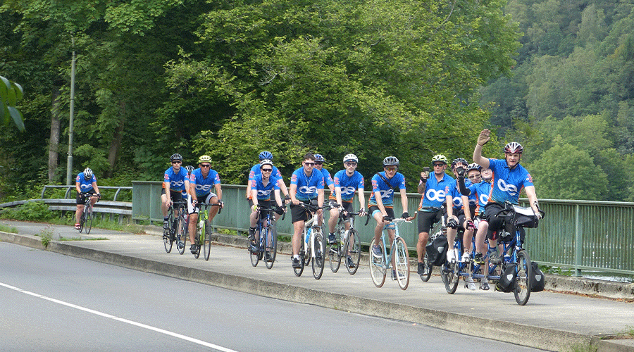With sales in Europe soaring, OE decided it was time to open an office in Germany. The opening was marked by the arrival of the British team – by bike from England.