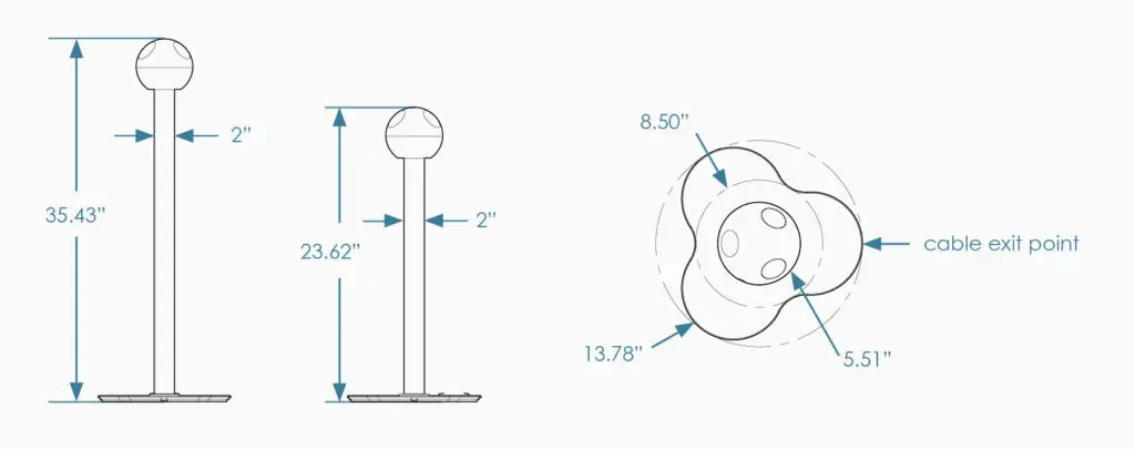 - materials – dome – high strength and flame retardant polycarbonate; leg – heavy duty aluminum; base – powder coated steel base with silicon feet.