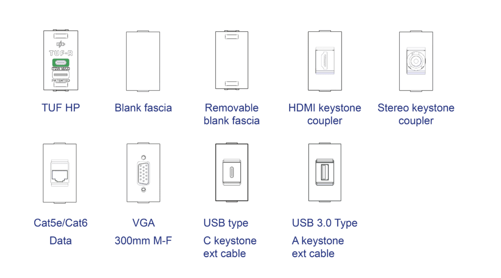 Add USB charging and Data/AV to your furniture in a snap with QF PORT. Rising only 3mm (.12″) above the surface, PORT’s near flush design makes it a discreet, practical solution. PORT offers convenient data connectivity or laptop charging capabilities when configured with our A+C USB module TUF-R HP.