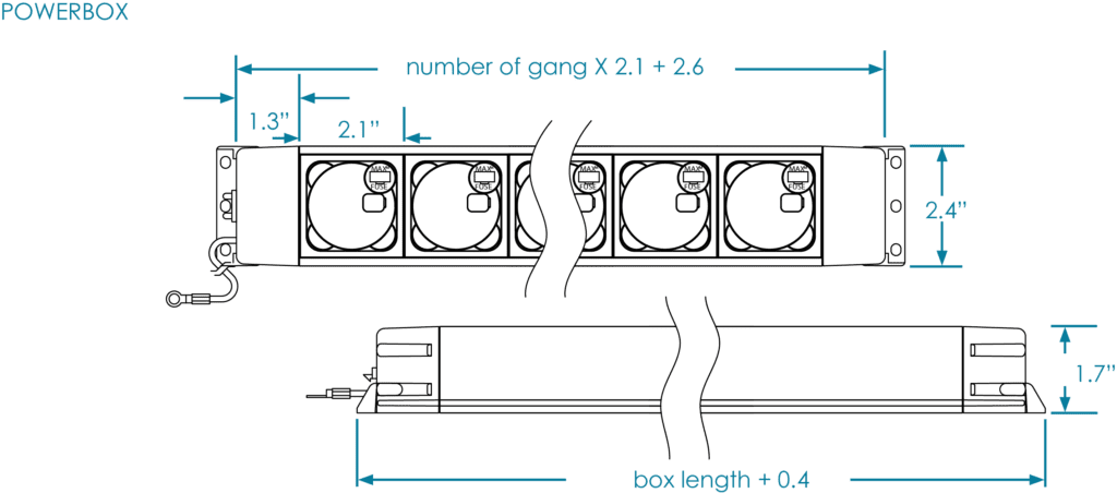 - cord options: POWERBOX is wired standard with a 108” 14/3 SJT cord to a NEMA plug. Available by special order with a 32” 14/3 SJT cord to a male GST or male GST inlet. A starter cord is required for GST options: 72” or 108” 14/3 SJT cord with female GST connector, NEMA plug, and integral OCP standard.