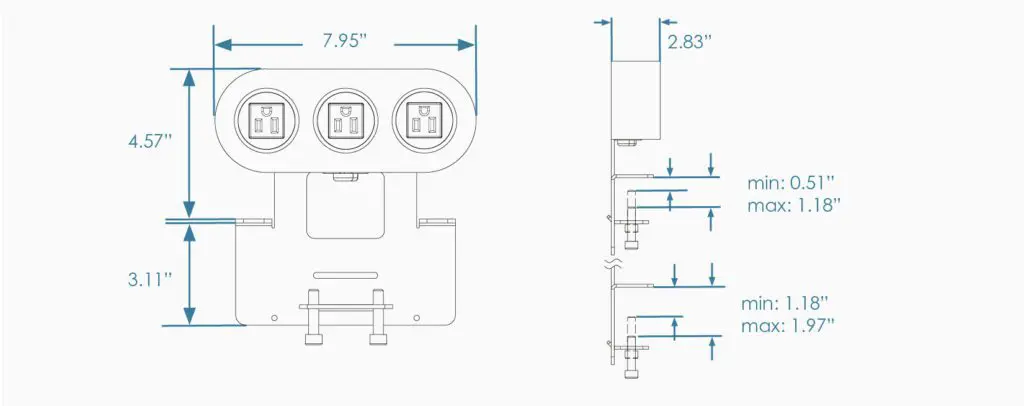 Available by special order wired with a NEMA 5-15 cord and plug.A starter cord is required for GST option: 72” or 108” 14/3 SJT cord with female GST connector, NEMA plug, and Integral OCP standard. - materials – body – laminate faced birch ply; socket inserts and fascias – polycarbonate; rear plate and bracket – powder coated steel.