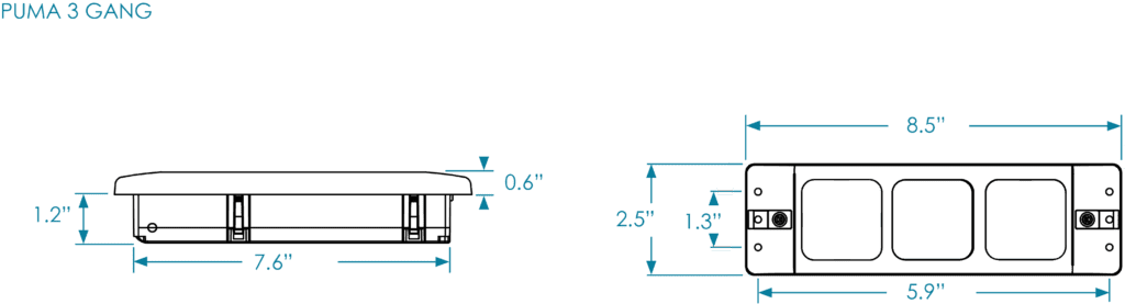 Available by special order wired with a NEMA 5-15 cord and plug. Rotating cable grip allows the cord to exit the rear or side of the unit, allowing Puma to be mounted with a minimum depth of 1.18” (30mm). - materials – high strength fire retardant polycarbonate.