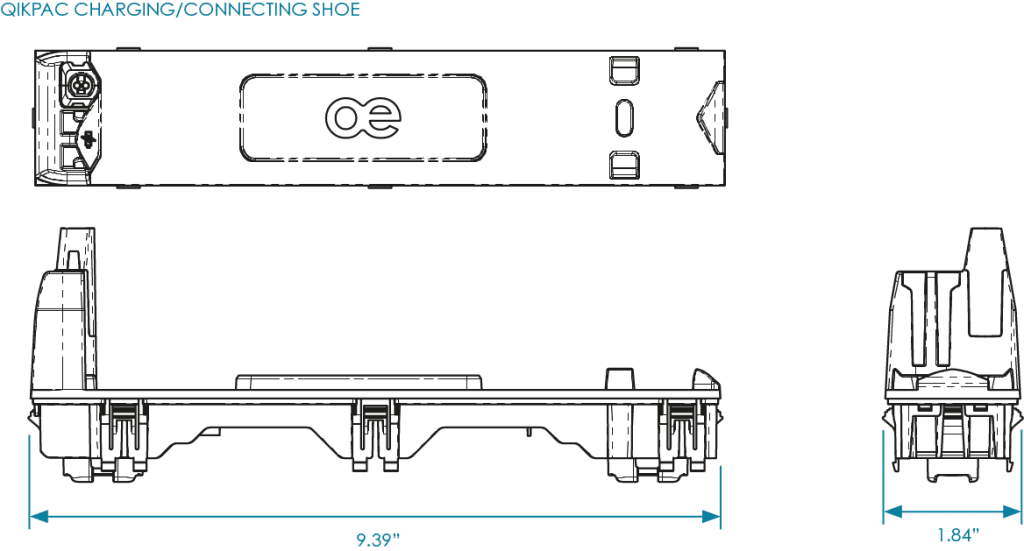 The QIKPAC CONNECTING SHOE connects batteries to furniture elements — as used in OE’s QIKDOC CONNECT.